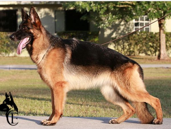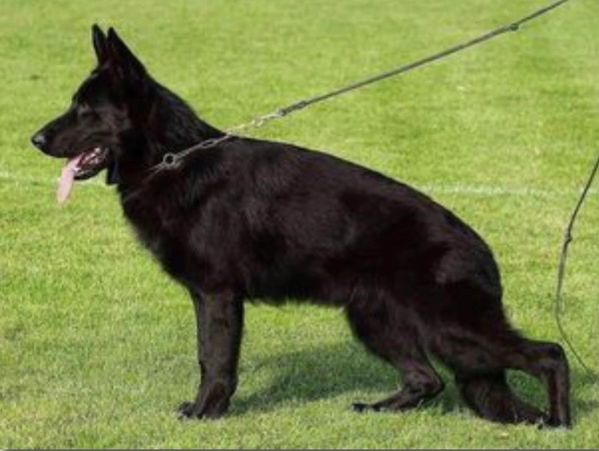 Large, almost strong, good substance, expressive with black pigment, very good ratio of height to length, good character, solid structure. Pronounced withers, straight back, pronounced sloping croup of still good length, correct angulation of the fore and hindquarters, balanced chest proportions with a long underline, correct front position. Straight sequences of steps back and front, very fluid, far-reaching gait with very good balance and good grandeur. Secure nature, TSB pronounced