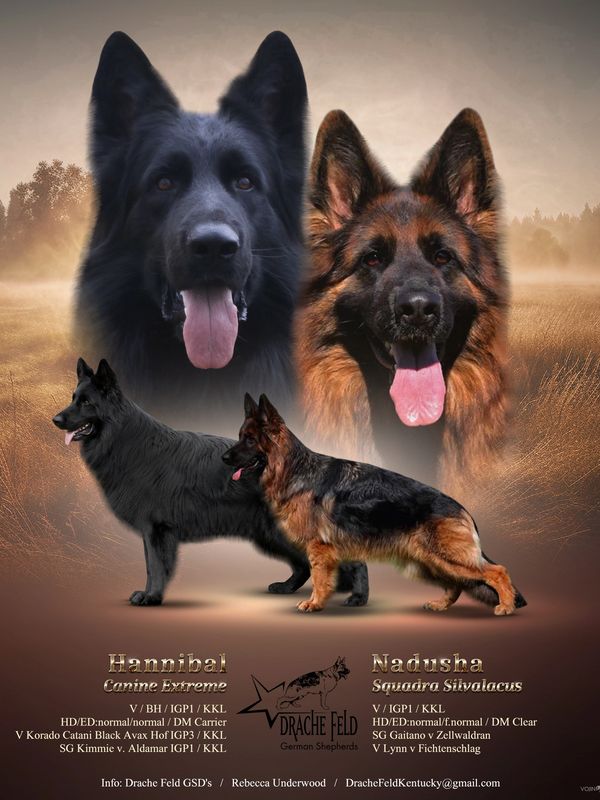 We are passionate about breeding German Shepherd Dogs and have been doing so for over several decades. Our focus is on producing healthy, well-tempered German Shepherd Dogs that make wonderful family pets. We pride ourselves on the health, temperament, exceptional beauty, and correct conformation in our Drache Feld program. Our breeding program is small and personal, allowing us to focus on the individual needs of each puppy. We invite you to explore our website to learn more about our breeding program, view our available puppies, and contact us to schedule a visit.