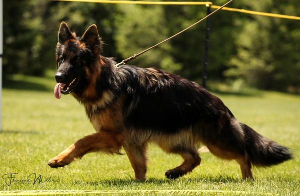 DM Clear HD/ED Normal, Quanta was imported in from Germany and was managed her at DF where she earned her VA Excellent Select rating. She was later purchased by DF. Quanta produced VA Wikki dei Precision, V1 Solo v. Drache Feld, V1 Siri vom Drache Feld, V1 Sula vom Drache Feld and several other excellent progeny. Her ability to produce and drives to work was inherited by Sula!