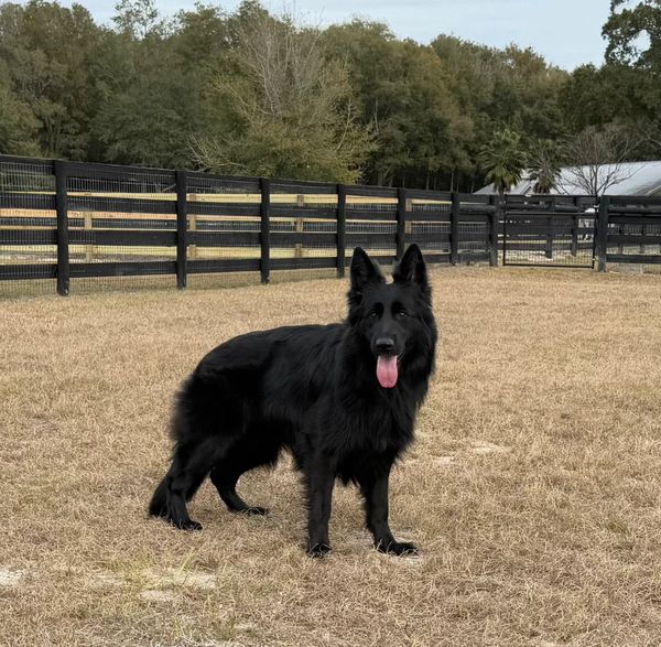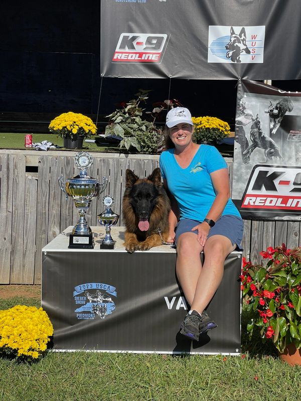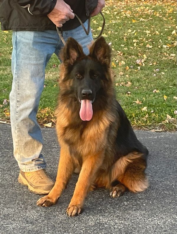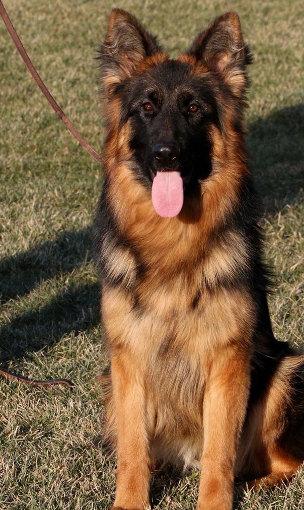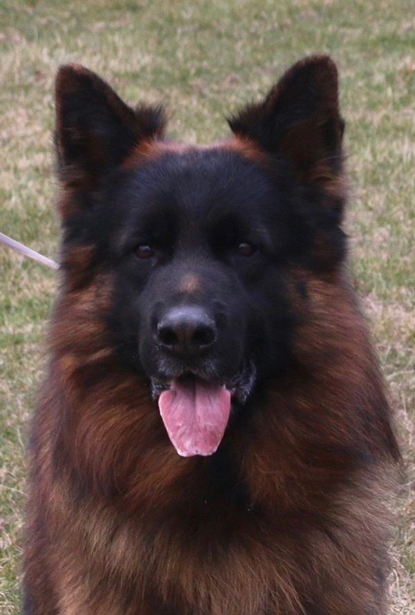 DM Clear HD/ED Normal, Matty was imported in from Germany. Handled, Trained, Titled by Drache Feld. A super producer himself he was from the great multiple World Champion VA1 Ballack von der Brucknerallee IPO3 KKL-lbz. Matty also produced our V1 Sophie vom Drache Feld and numerous excellent puppies. His rich color, dark pigment, and super temperament was noted in his progeny.